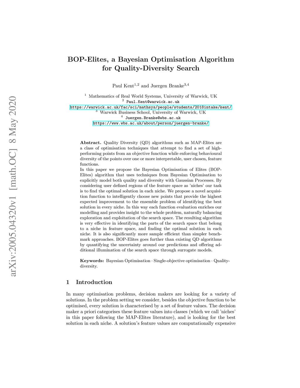 BOP-Elites, a Bayesian Optimisation algorithm for Quality-Diversity