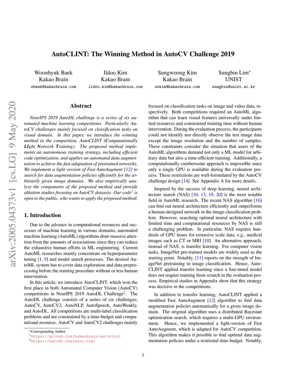 AutoCLINT: The Winning Method in AutoCV Challenge 2019