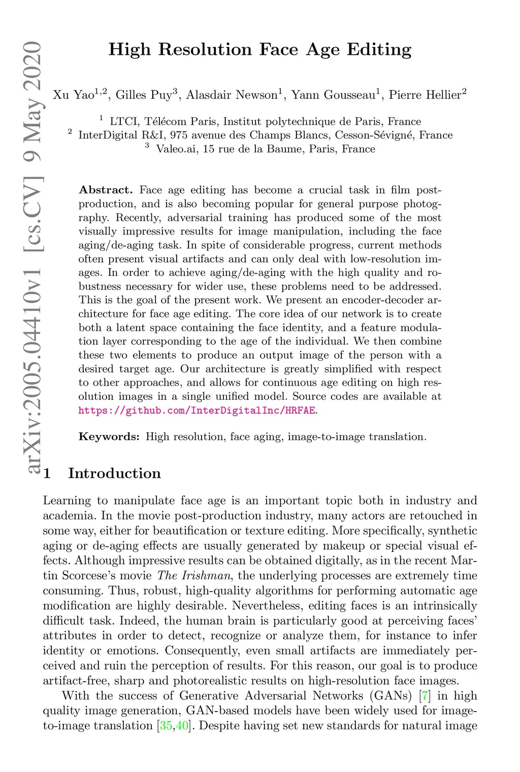 Face age editing has become a crucial task in film post-production, and is also becoming popular for general purpose photography. Recently, adversarial training has produced some of the most visually impressive results for image manipulation, including the face aging/de-aging task. In spite of considerable progress, current methods often present visual artifacts and can only deal with low-resolution images. In order to achieve aging/de-aging with the high quality and robustness necessary for wider use, these problems need to be addressed. This is the goal of the present work. We present an encoder-decoder architecture for face age editing. The core idea of our network is to create both a latent space containing the face identity, and a feature modulation layer corresponding to the age of the individual. We then combine these two elements to produce an output image of the person with a desired target age. Our architecture is greatly simplified with respect to other approaches, and allows for continuous age editing on high resolution images in a single unified model.
