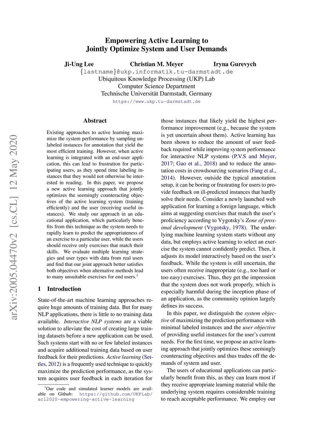 Empowering Active Learning to Jointly Optimize System and User Demands