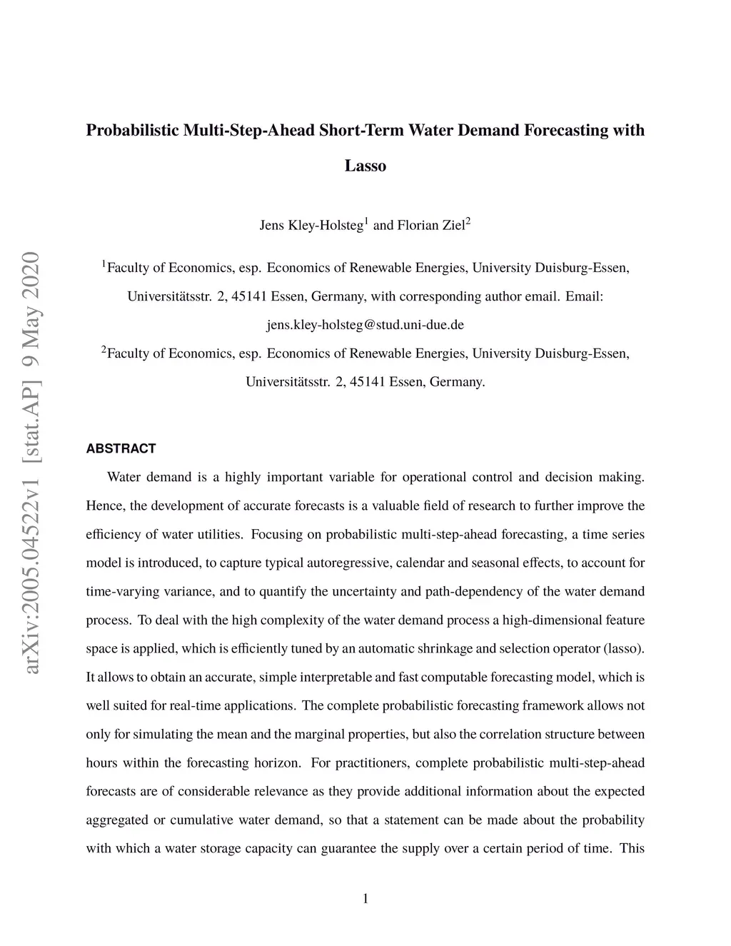 Probabilistic Multi-Step-Ahead Short-Term Water Demand Forecasting with