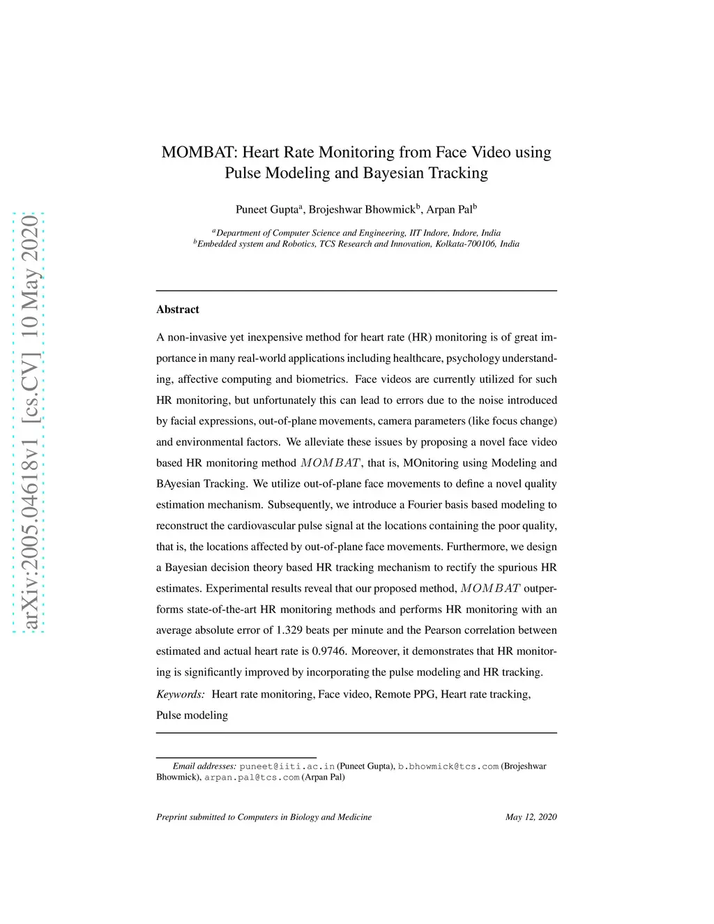 MOMBAT: Heart Rate Monitoring from Face Video using Pulse Modeling and