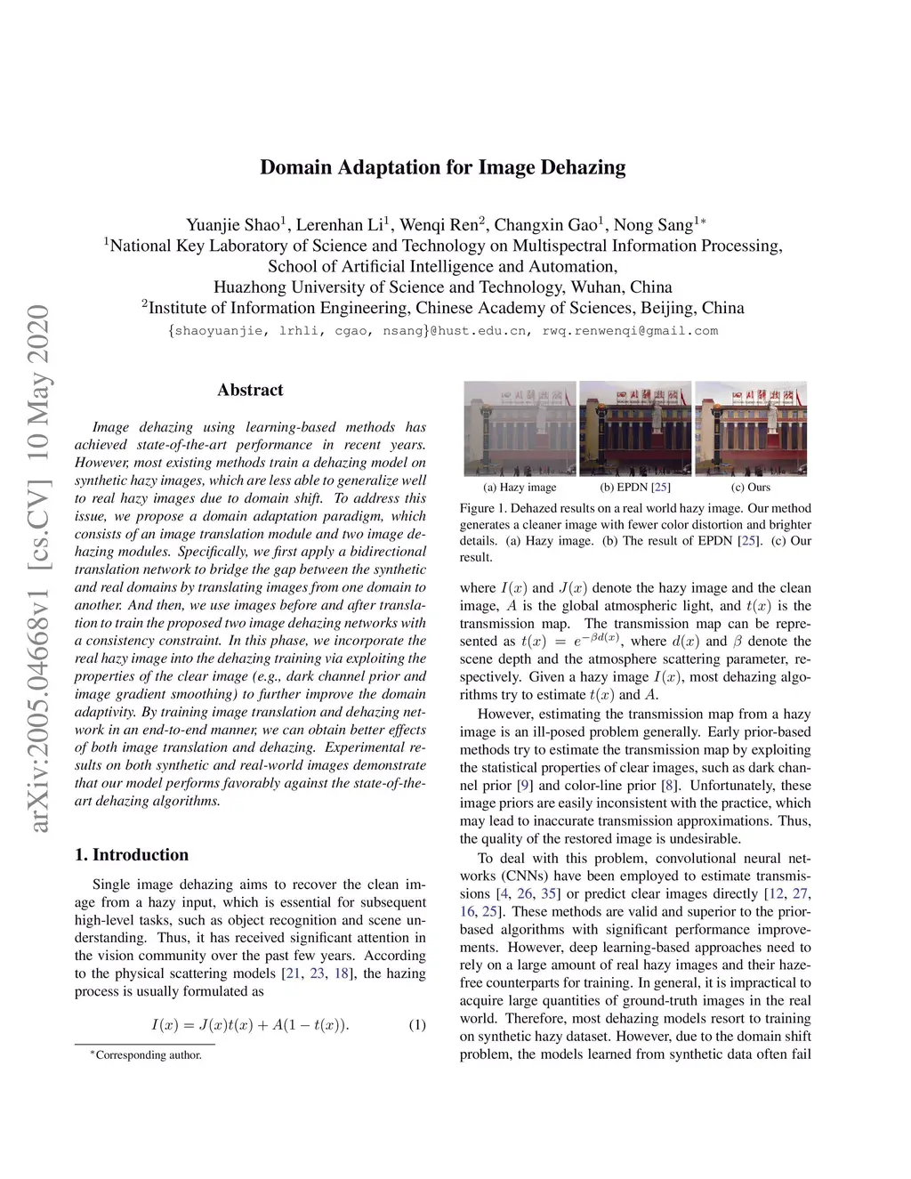 Domain Adaptation for Image Dehazing