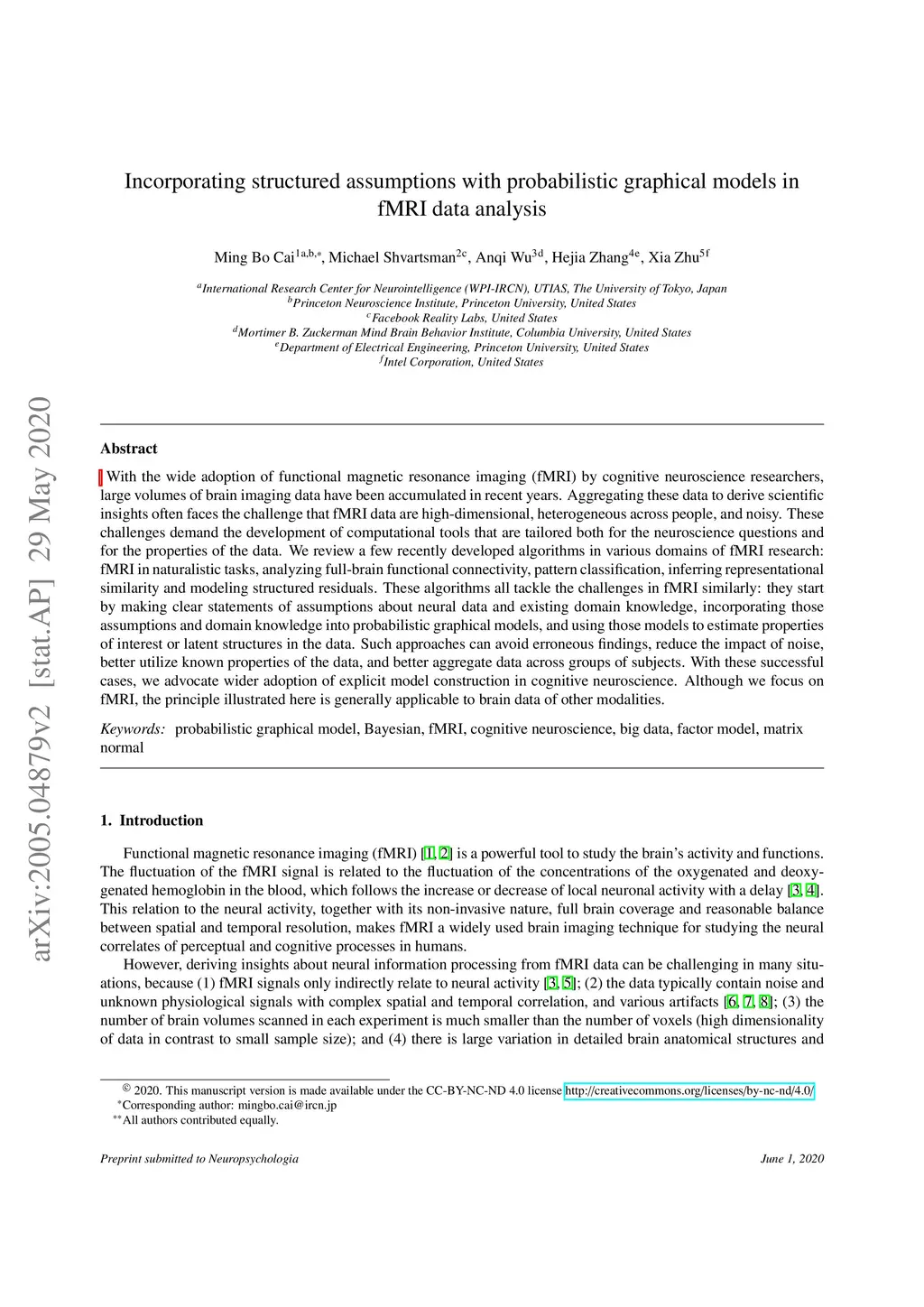 With the wide adoption of functional magnetic resonance imaging (fMRI) by cognitive neuroscience researchers, large volumes of brain imaging data have been accumulated in recent years. Aggregating these data to derive scientific insights often faces the challenge that fMRI data are high-dimensional, heterogeneous across people, and noisy. These challenges demand the development of computational tools that are tailored both for the neuroscience questions and for the properties of the data. We review a few recently developed algorithms in various domains of fMRI research: fMRI in naturalistic tasks, analyzing full-brain functional connectivity, pattern classification, inferring representational similarity and modeling structured residuals. These algorithms all tackle the challenges in fMRI similarly: they start by making clear statements of assumptions about neural data and existing domain knowledge, incorporating those assumptions and domain knowledge into probabilistic graphical models, and using those models to estimate properties of interest or latent structures in the data. Such approaches can avoid erroneous findings, reduce the impact of noise, better utilize known properties of the data, and better aggregate data across groups of subjects. With these successful cases, we advocate wider adoption of explicit model construction in cognitive neuroscience. Although we focus on fMRI, the principle illustrated here is generally applicable to brain data of other modalities.