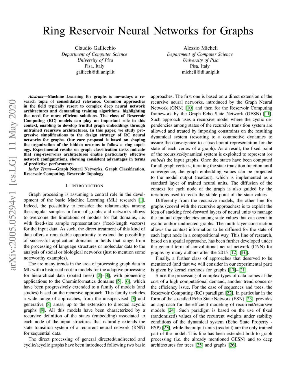 Ring Reservoir Neural Networks for Graphs