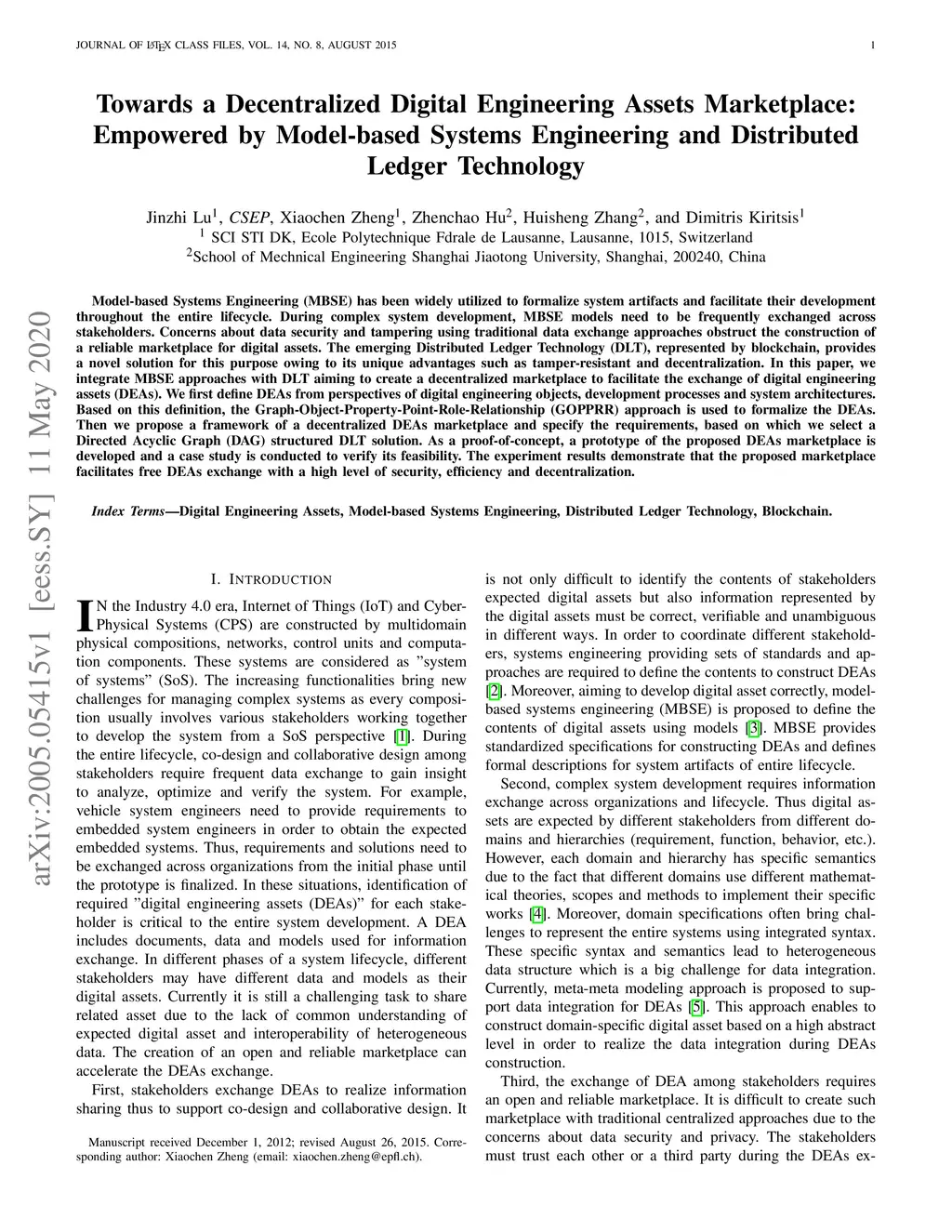 Empowered by Model-based Systems Engineering and Distributed Ledger