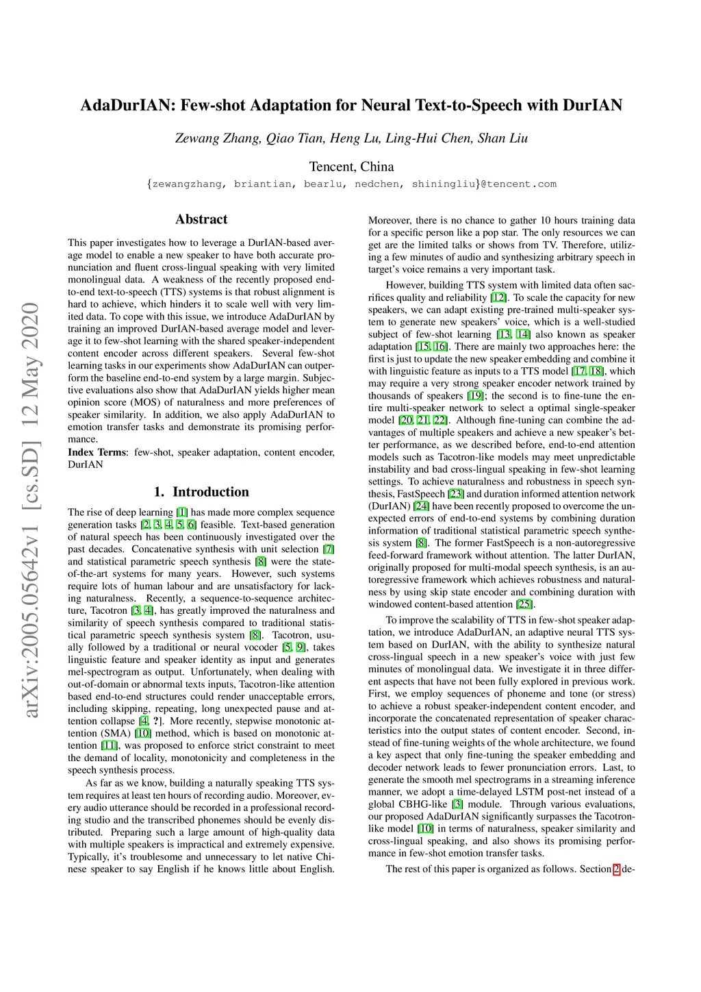 This paper investigates how to leverage a DurIAN-based average model to enable a new speaker to have both accurate pronunciation and fluent cross-lingual speaking with very limited monolingual data. A weakness of the recently proposed end-to-end text-to-speech (TTS) systems is that robust alignment is hard to achieve, which hinders it to scale well with very limited data. To cope with this issue, we introduce AdaDurIAN by training an improved DurIAN-based average model and leverage it to few-shot learning with the shared speaker-independent content encoder across different speakers. Several few-shot learning tasks in our experiments show AdaDurIAN can outperform the baseline end-to-end system by a large margin. Subjective evaluations also show that AdaDurIAN yields higher mean opinion score (MOS) of naturalness and more preferences of speaker similarity. In addition, we also apply AdaDurIAN to emotion transfer tasks and demonstrate its promising performance.