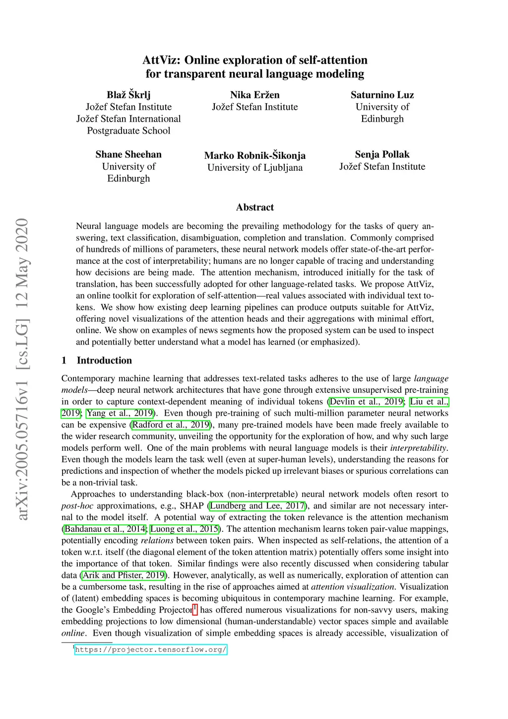 Neural language models are becoming the prevailing methodology for the tasks of query answering, text classification, disambiguation, completion and translation. Commonly comprised of hundreds of millions of parameters, these neural network models offer state-of-the-art performance at the cost of interpretability; humans are no longer capable of tracing and understanding how decisions are being made. The attention mechanism, introduced initially for the task of translation, has been successfully adopted for other language-related tasks. We propose AttViz, an online toolkit for exploration of self-attention---real values associated with individual text tokens. We show how existing deep learning pipelines can produce outputs suitable for AttViz, offering novel visualizations of the attention heads and their aggregations with minimal effort, online. We show on examples of news segments how the proposed system can be used to inspect and potentially better understand what a model has learned (or emphasized).
