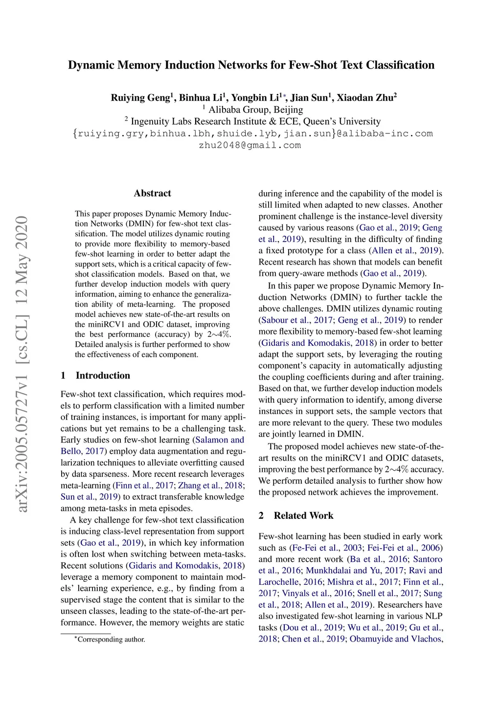 Dynamic Memory Induction Networks for Few-Shot Text Classification