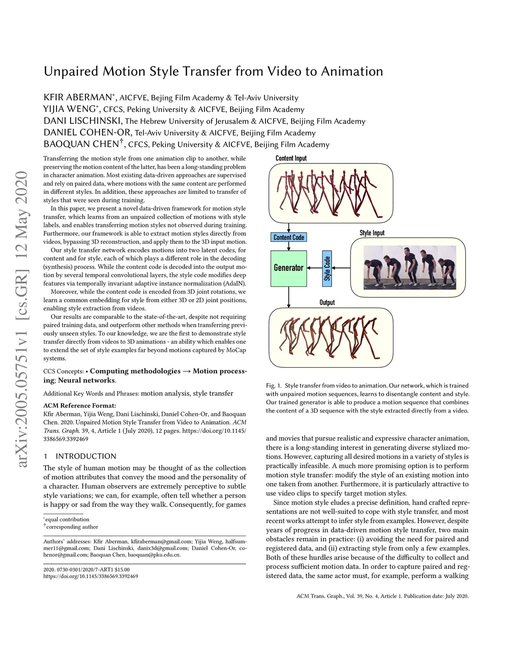Unpaired Motion Style Transfer from Video to Animation