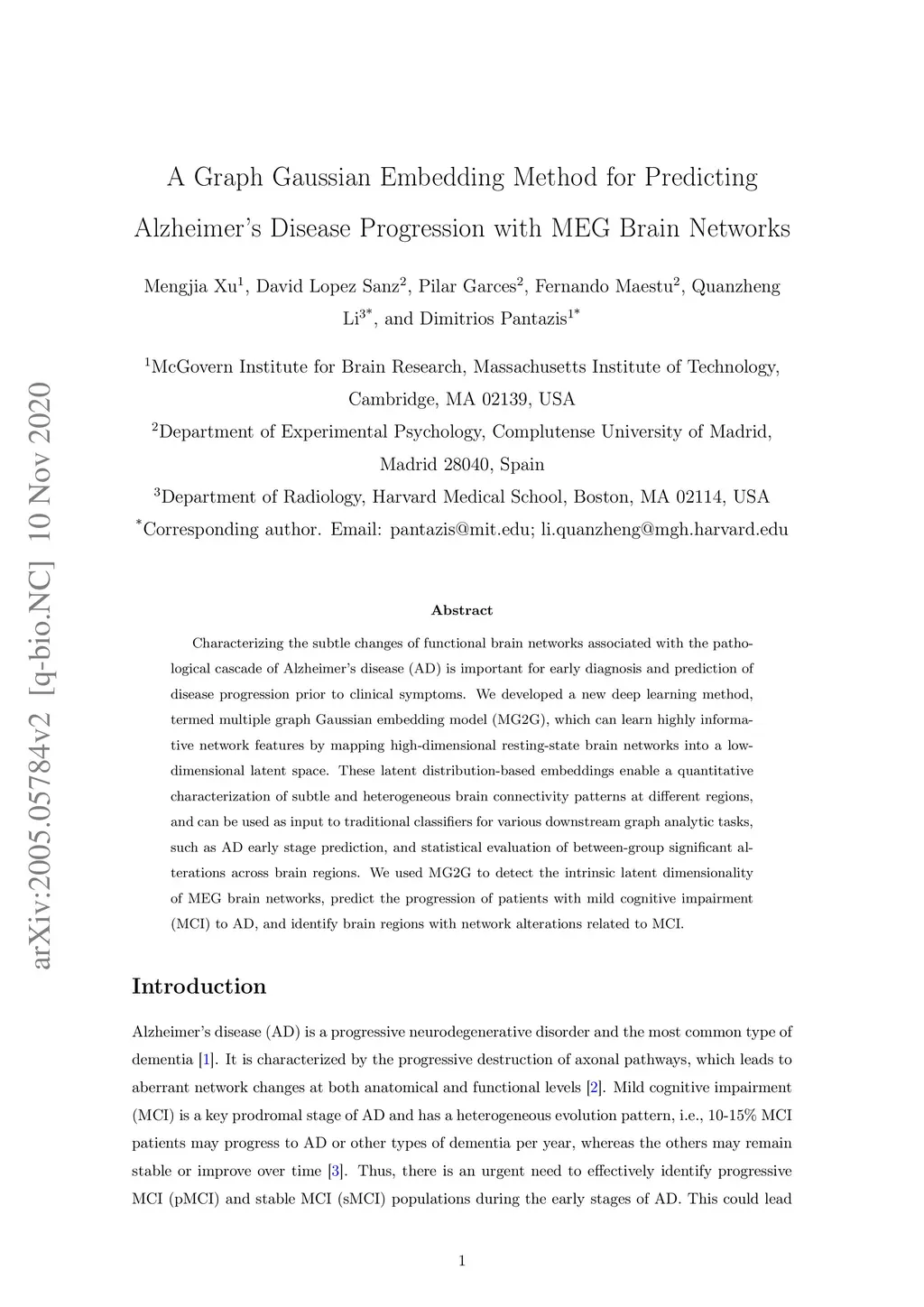 A Graph Gaussian Embedding Method for Predicting Alzheimer's Disease