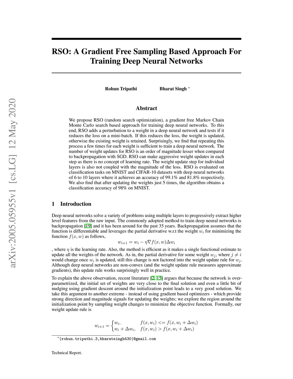 RSO: A Gradient Free Sampling Based Approach For Training Deep Neural