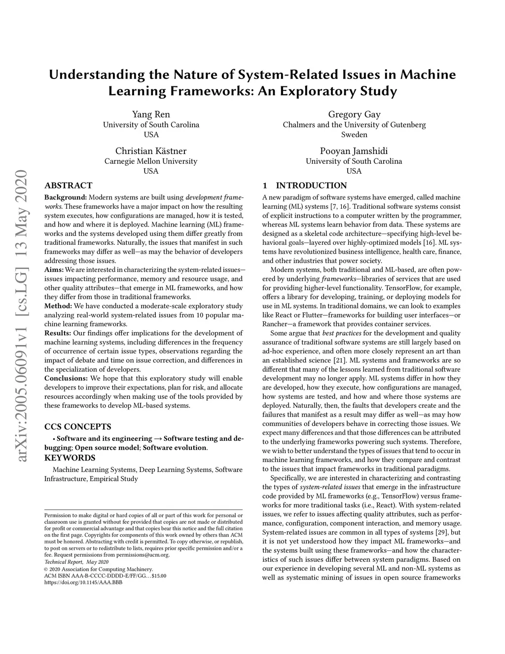 Modern systems are built using development frameworks. These frameworks have a major impact on how the resulting system executes, how configurations are managed, how it is tested, and how and where it is deployed. Machine learning (ML) frameworks and the systems developed using them differ greatly from traditional frameworks. Naturally, the issues that manifest in such frameworks may differ as well---as may the behavior of developers addressing those issues. We are interested in characterizing the system-related issues---issues impacting performance, memory and resource usage, and other quality attributes---that emerge in ML frameworks, and how they differ from those in traditional frameworks. We have conducted a moderate-scale exploratory study analyzing real-world system-related issues from 10 popular machine learning frameworks. Our findings offer implications for the development of machine learning systems, including differences in the frequency of occurrence of certain issue types, observations regarding the impact of debate and time on issue correction, and differences in the specialization of developers. We hope that this exploratory study will enable developers to improve their expectations, plan for risk, and allocate resources accordingly when making use of the tools provided by these frameworks to develop ML-based systems.