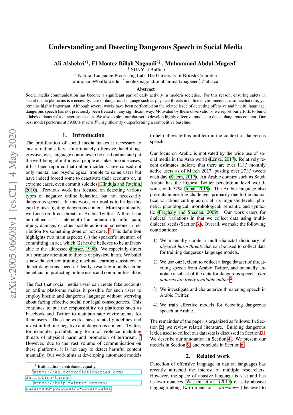 Understanding and Detecting Dangerous Speech in Social Media