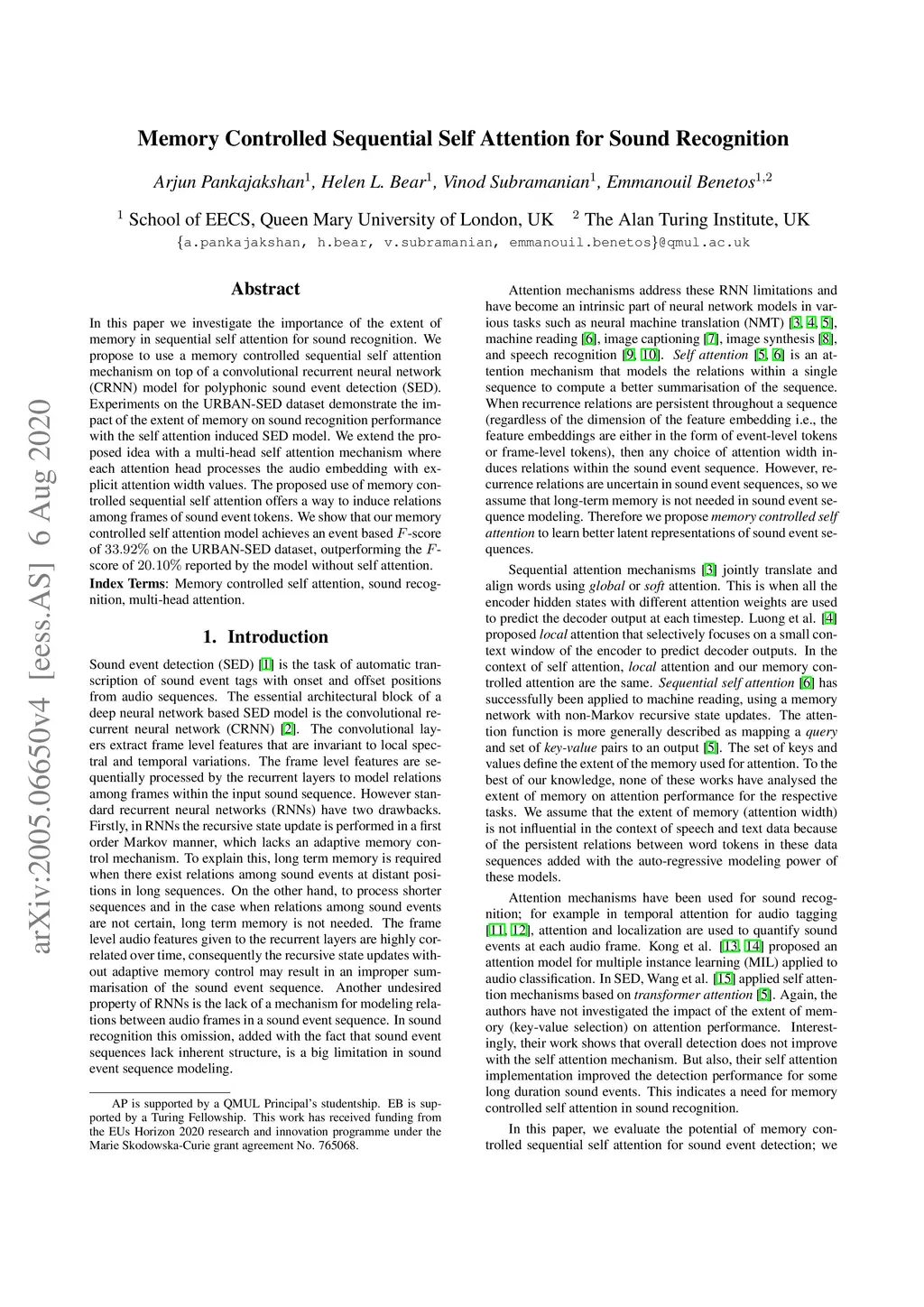 Memory Controlled Sequential Self Attention for Sound Recognition