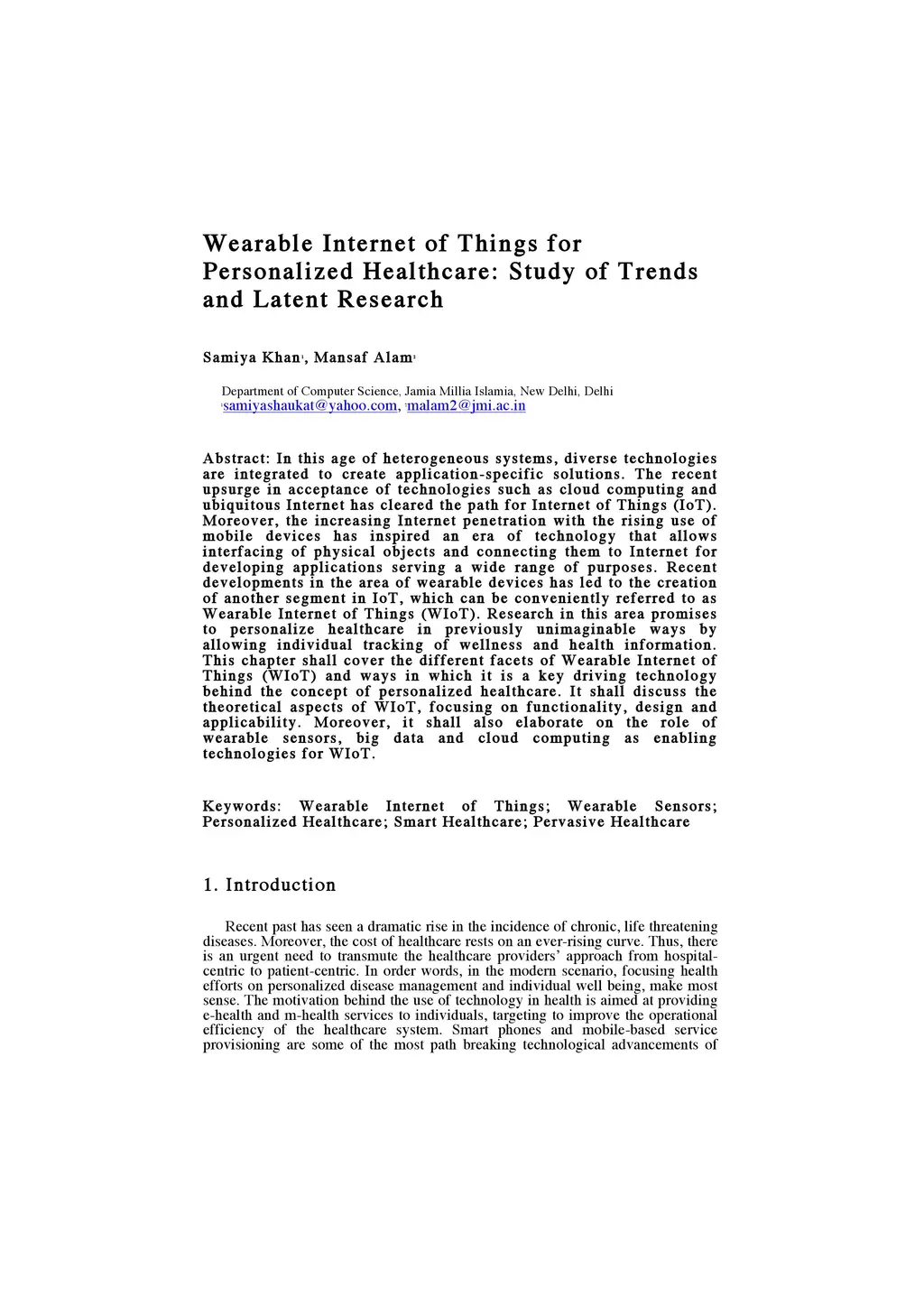 Wearable Internet of Things for Personalized Healthcare Study of Trends