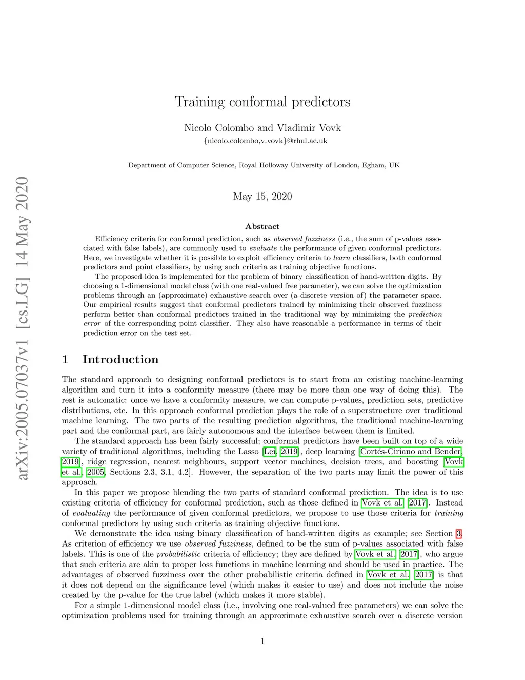 Efficiency criteria for conformal prediction, such as \emph{observed fuzziness} (i.e., the sum of p-values associated with false labels), are commonly used to \emph{evaluate} the performance of given conformal predictors. Here, we investigate whether it is possible to exploit efficiency criteria to \emph{learn} classifiers, both conformal predictors and point classifiers, by using such criteria as training objective functions. The proposed idea is implemented for the problem of binary classification of hand-written digits. By choosing a 1-dimensional model class (with one real-valued free parameter), we can solve the optimization problems through an (approximate) exhaustive search over (a discrete version of) the parameter space. Our empirical results suggest that conformal predictors trained by minimizing their observed fuzziness perform better than conformal predictors trained in the traditional way by minimizing the \emph{prediction error} of the corresponding point classifier. They also have a reasonable performance in terms of their prediction error on the test set.