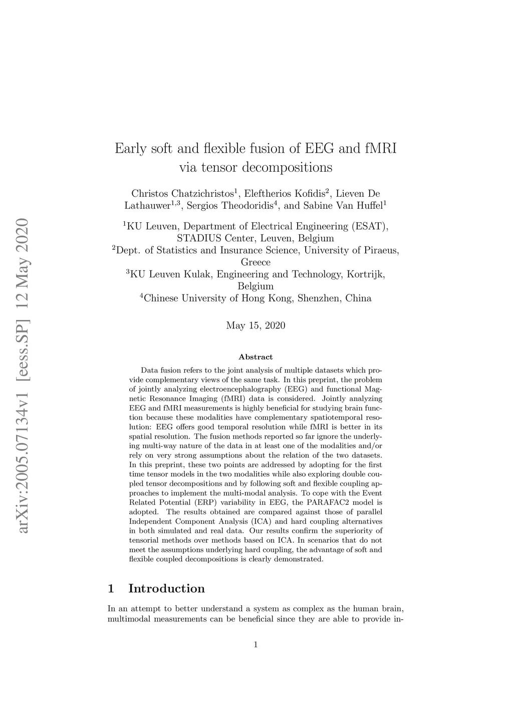 Data fusion refers to the joint analysis of multiple datasets which provide complementary views of the same task. In this preprint, the problem of jointly analyzing electroencephalography (EEG) and functional Magnetic Resonance Imaging (fMRI) data is considered. Jointly analyzing EEG and fMRI measurements is highly beneficial for studying brain function because these modalities have complementary spatiotemporal resolution: EEG offers good temporal resolution while fMRI is better in its spatial resolution. The fusion methods reported so far ignore the underlying multi-way nature of the data in at least one of the modalities and/or rely on very strong assumptions about the relation of the two datasets. In this preprint, these two points are addressed by adopting for the first time tensor models in the two modalities while also exploring double coupled tensor decompositions and by following soft and flexible coupling approaches to implement the multi-modal analysis. To cope with the Event Related Potential (ERP) variability in EEG, the PARAFAC2 model is adopted. The results obtained are compared against those of parallel Independent Component Analysis (ICA) and hard coupling alternatives in both simulated and real data. Our results confirm the superiority of tensorial methods over methods based on ICA. In scenarios that do not meet the assumptions underlying hard coupling, the advantage of soft and flexible coupled decompositions is clearly demonstrated.