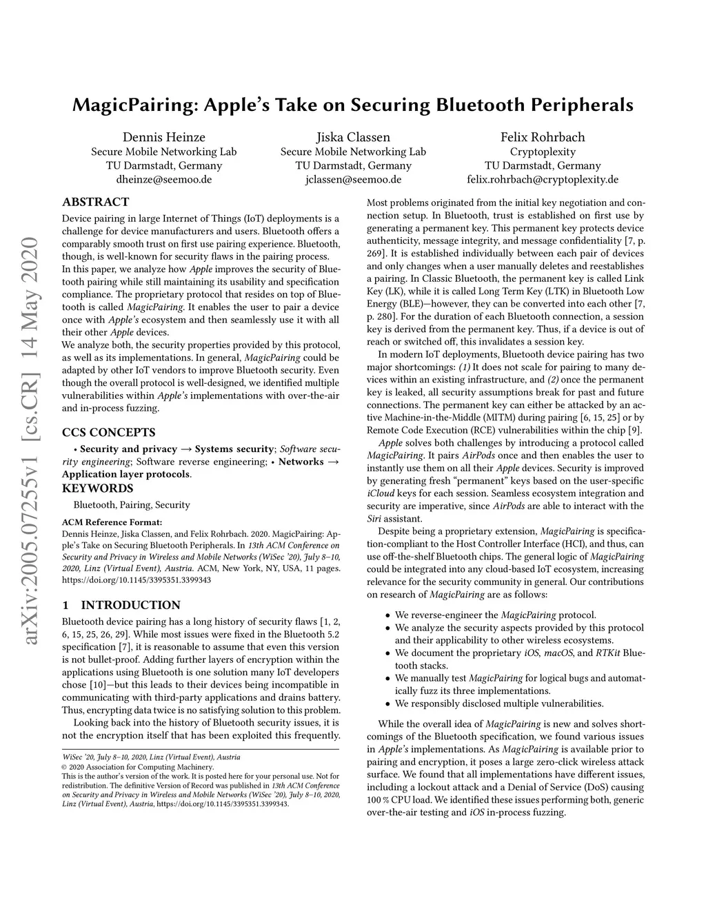 MagicPairing: Apple's Take on Securing Bluetooth Peripherals