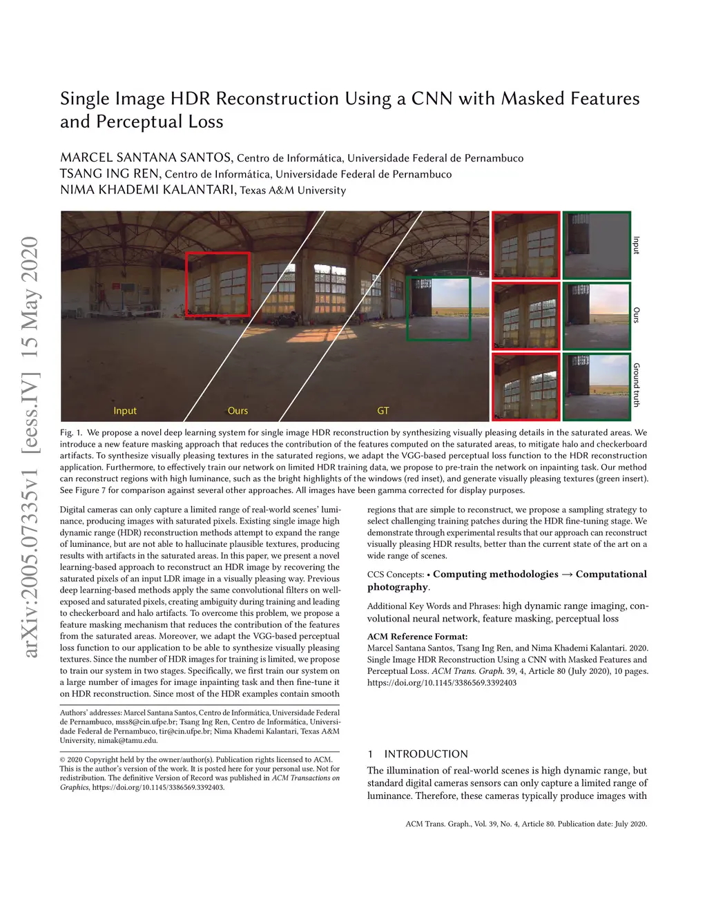 Single Image HDR Reconstruction Using a CNN with Masked Features and