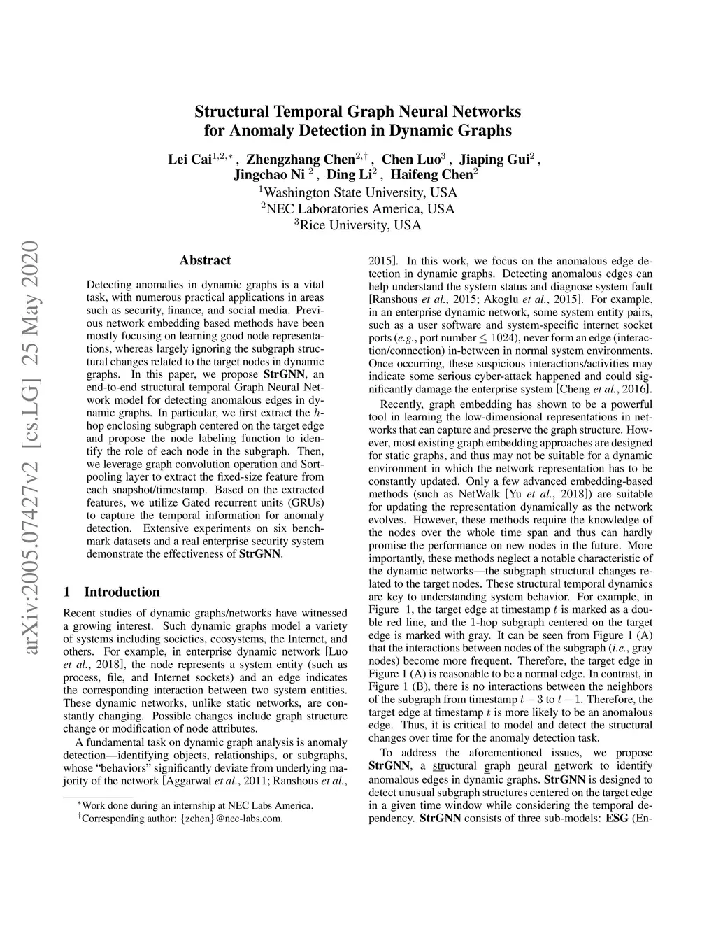 Structural Temporal Graph Neural Networks for Anomaly Detection in