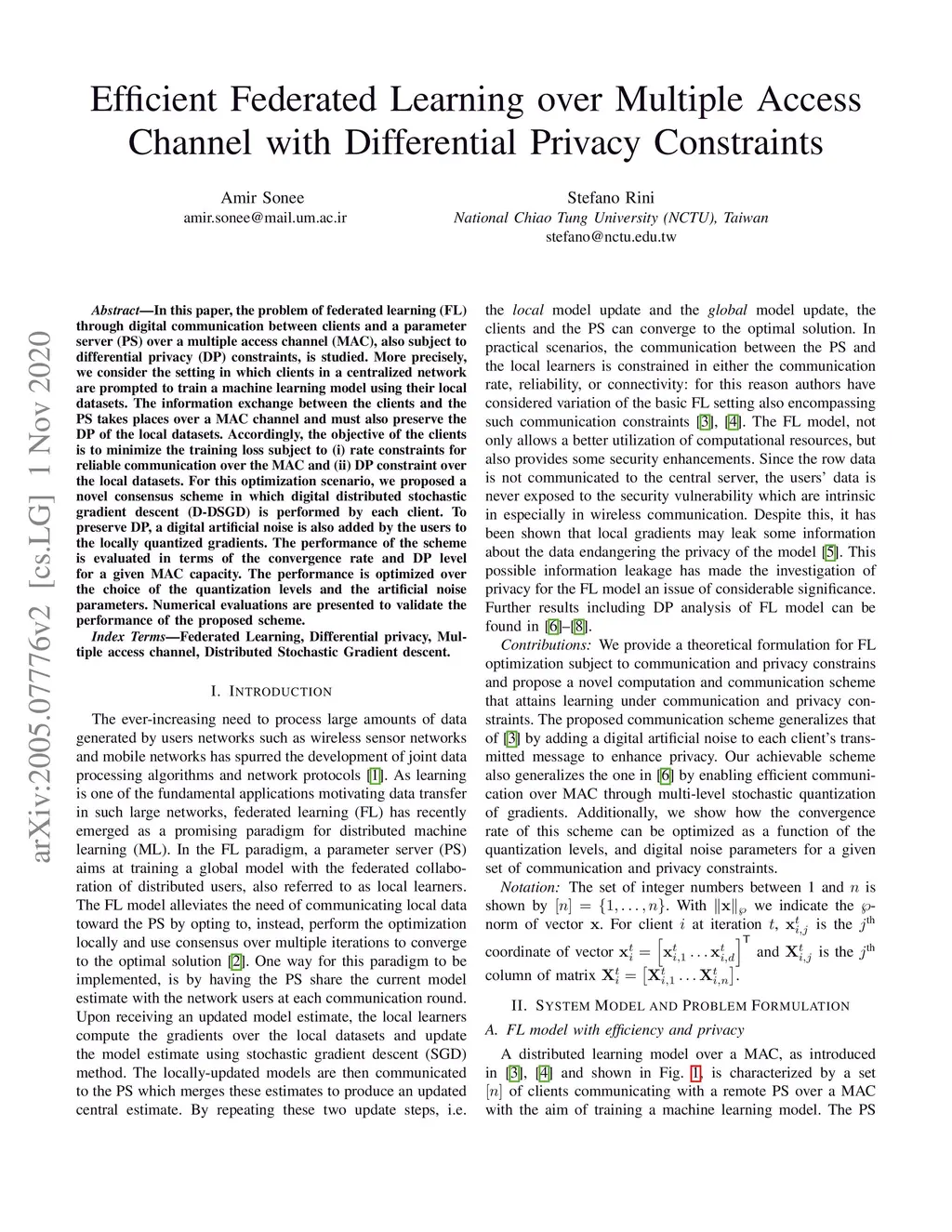 In this paper, the problem of federated learning (FL) through digital communication between clients and a parameter server (PS) over a multiple access channel (MAC), also subject to differential privacy (DP) constraints, is studied. More precisely, we consider the setting in which clients in a centralized network are prompted to train a machine learning model using their local datasets. The information exchange between the clients and the PS takes places over a MAC channel and must also preserve the DP of the local datasets. Accordingly, the objective of the clients is to minimize the training loss subject to (i) rate constraints for reliable communication over the MAC and (ii) DP constraint over the local datasets. For this optimization scenario, we proposed a novel consensus scheme in which digital distributed stochastic gradient descent (D-DSGD) is performed by each client. To preserve DP, a digital artificial noise is also added by the users to the locally quantized gradients. The performance of the scheme is evaluated in terms of the convergence rate and DP level for a given MAC capacity. The performance is optimized over the choice of the quantization levels and the artificial noise parameters. Numerical evaluations are presented to validate the performance of the proposed scheme.