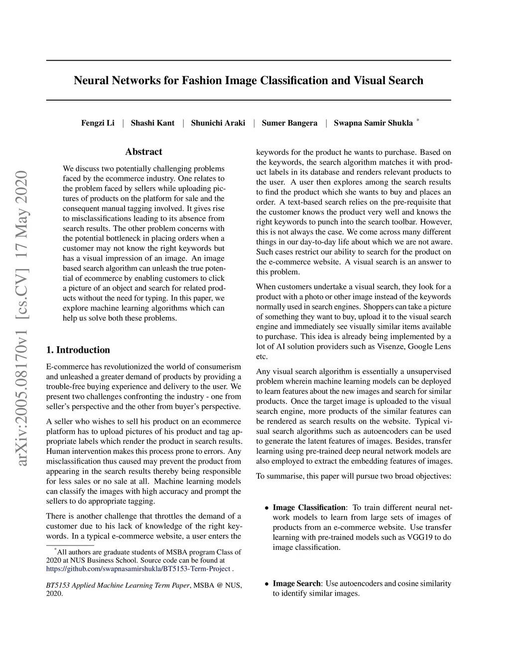 Neural Networks for Fashion Image Classification and Visual Search