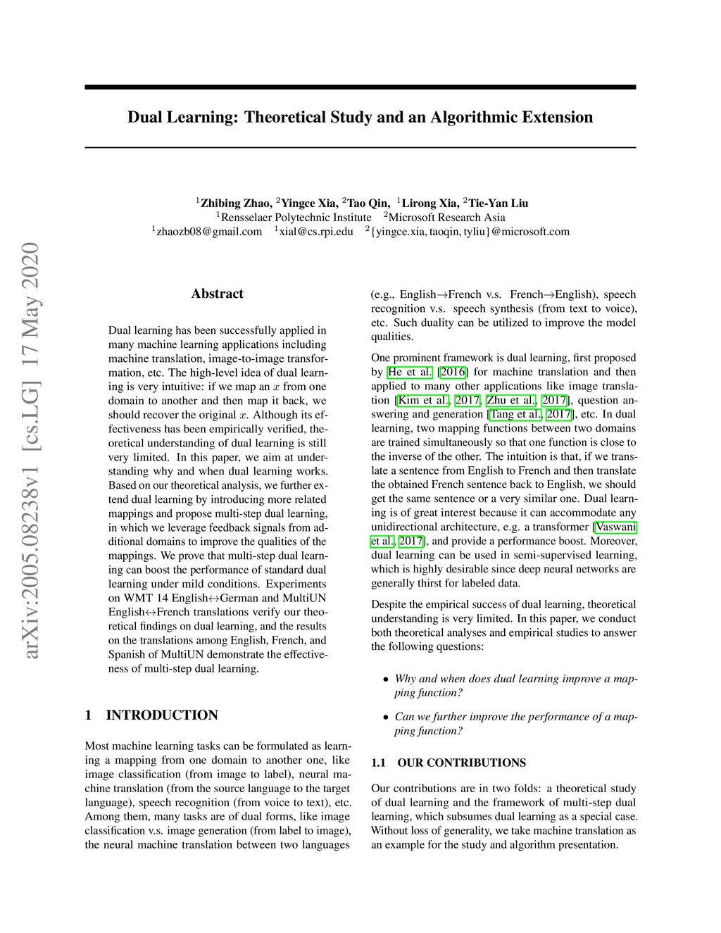Dual Learning: Theoretical Study and an Algorithmic Extension