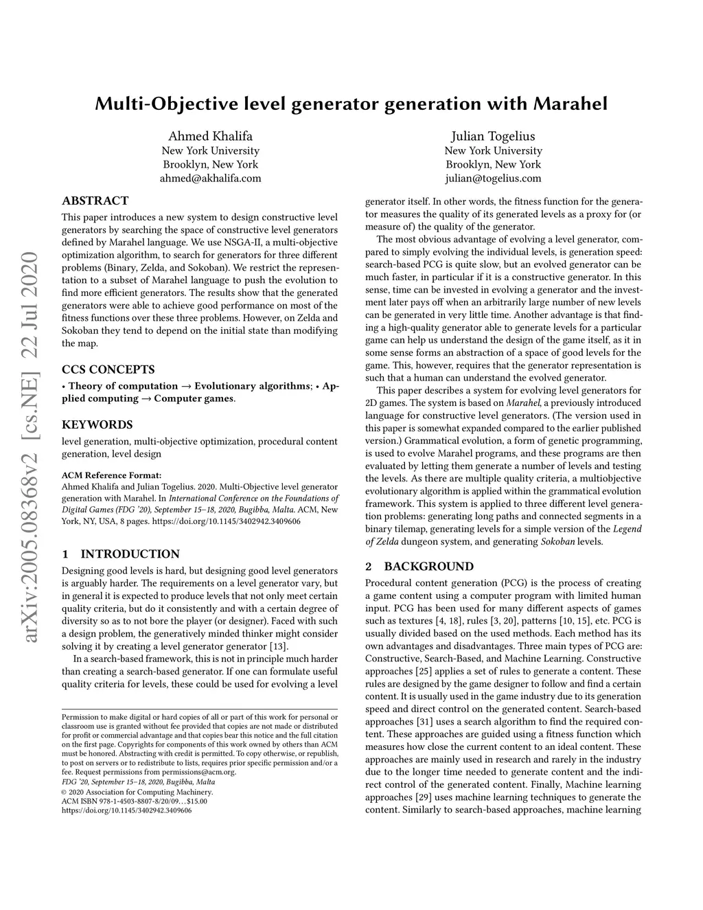 Multi-Objective level generator generation with Marahel