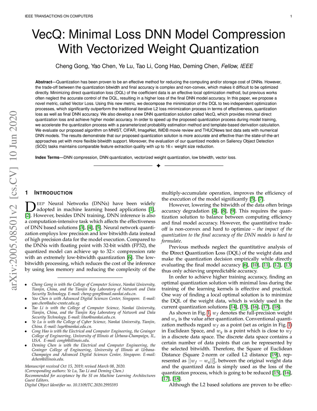 VecQ: Minimal Loss DNN Model Compression With Vectorized Weight