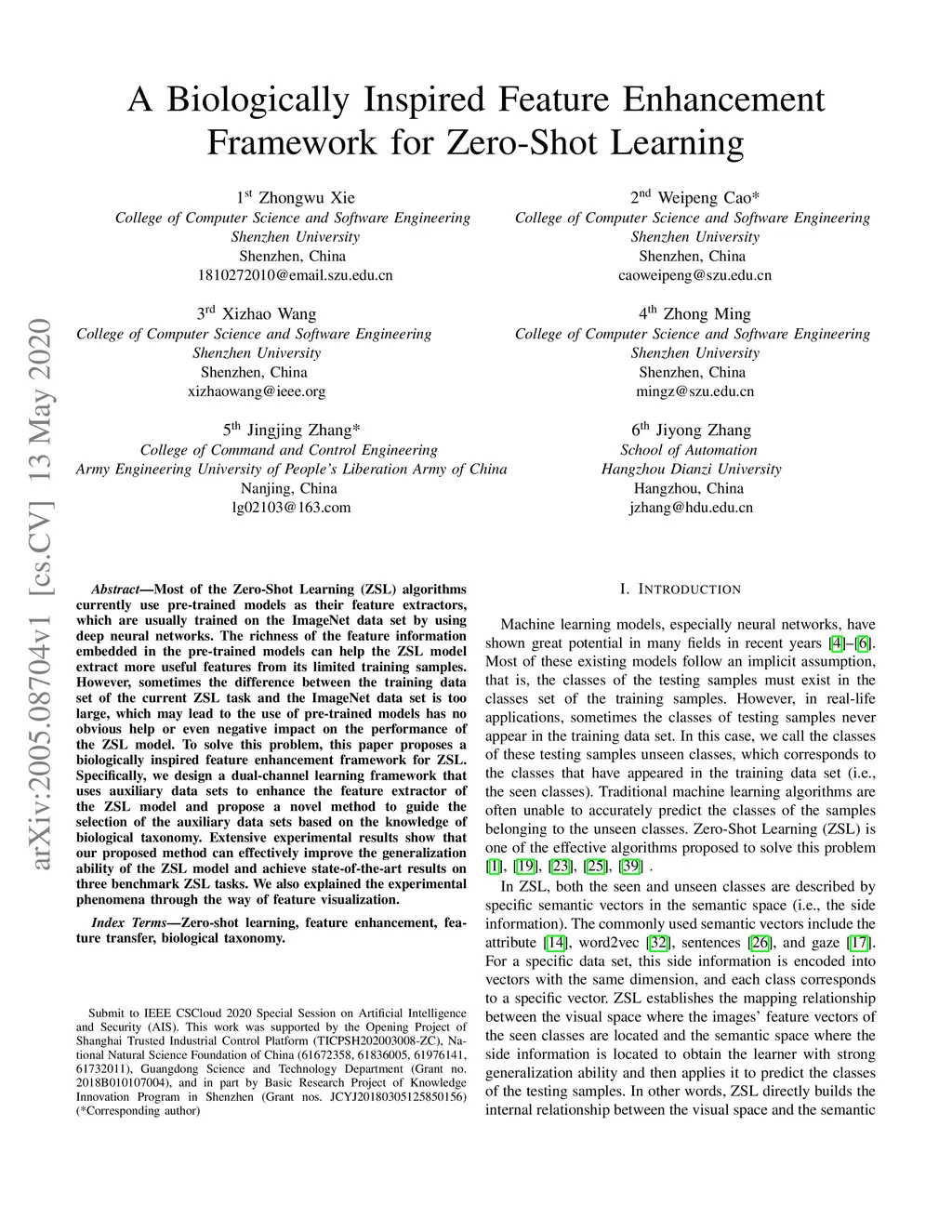 A Biologically Inspired Feature Enhancement Framework for Zero-Shot