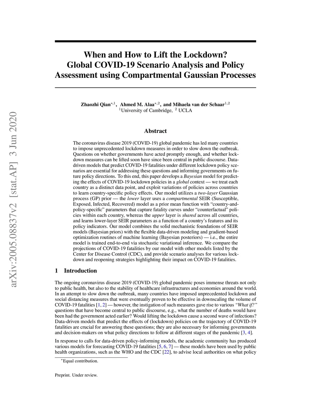 The coronavirus disease 2019 (COVID-19) global pandemic has led many countries to impose unprecedented lockdown measures in order to slow down the outbreak. Questions on whether governments have acted promptly enough, and whether lockdown measures can be lifted soon have since been central in public discourse. Data-driven models that predict COVID-19 fatalities under different lockdown policy scenarios are essential for addressing these questions and informing governments on future policy directions. To this end, this paper develops a Bayesian model for predicting the effects of COVID-19 lockdown policies in a global context -- we treat each country as a distinct data point, and exploit variations of policies across countries to learn country-specific policy effects. Our model utilizes a two-layer Gaussian process (GP) prior -- the lower layer uses a compartmental SEIR (Susceptible, Exposed, Infected, Recovered) model as a prior mean function with "country-and-policy-specific" parameters that capture fatality curves under "counterfactual" policies within each country, whereas the upper layer is shared across all countries, and learns lower-layer SEIR parameters as a function of a country's features and its policy indicators. Our model combines the solid mechanistic foundations of SEIR models (Bayesian priors) with the flexible data-driven modeling and gradient-based optimization routines of machine learning (Bayesian posteriors) -- i.e., the entire model is trained end-to-end via stochastic variational inference. We compare the projections of COVID-19 fatalities by our model with other models listed by the Center for Disease Control (CDC), and provide scenario analyses for various lockdown and reopening strategies highlighting their impact on COVID-19 fatalities.