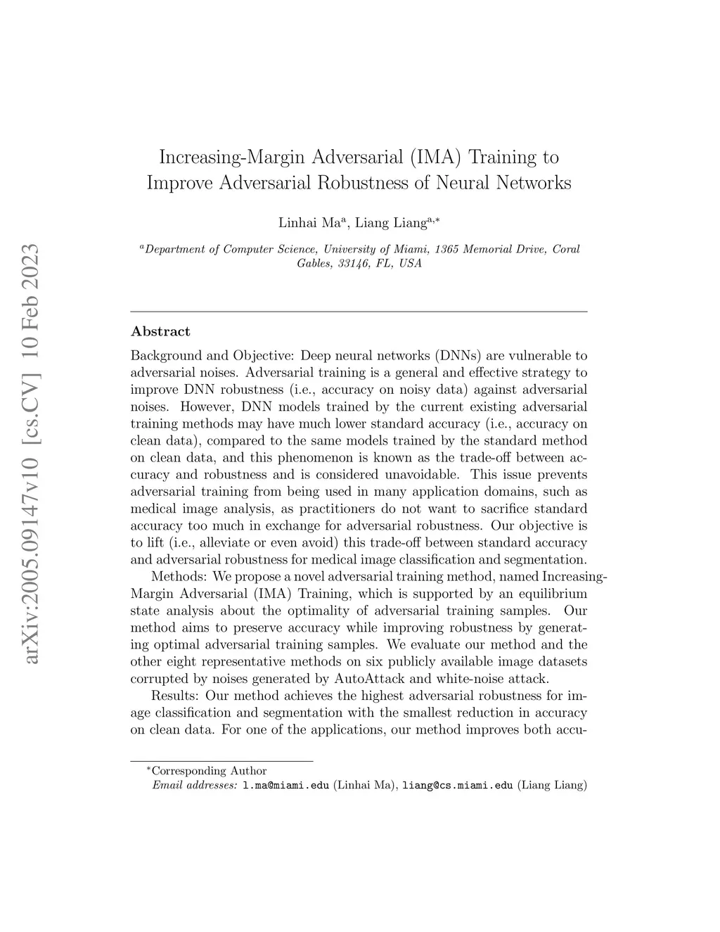 Increasing-Margin Adversarial (IMA) Training to Improve Adversarial