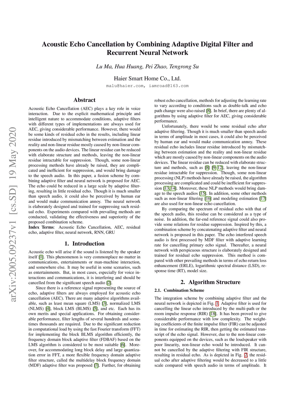 Acoustic Echo Cancellation by Combining Adaptive Digital Filter and