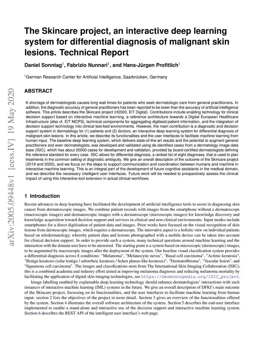 differential diagnosis of malignant skin lesions. Technical Report