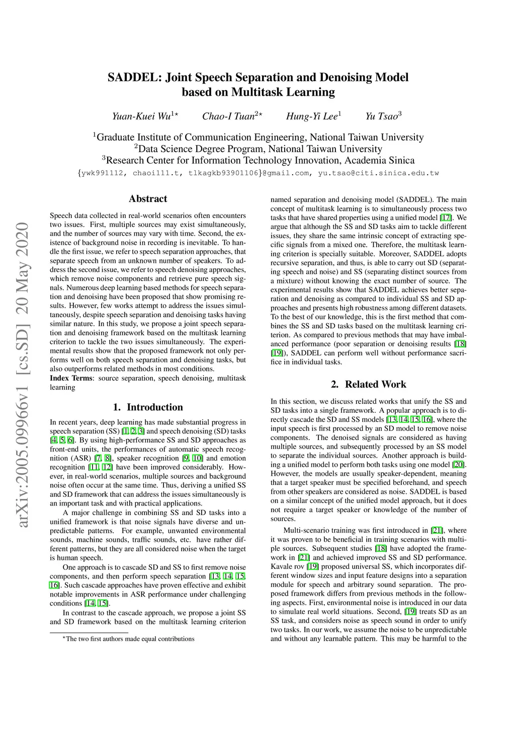 SADDEL: Joint Speech Separation and Denoising Model based on Multitask