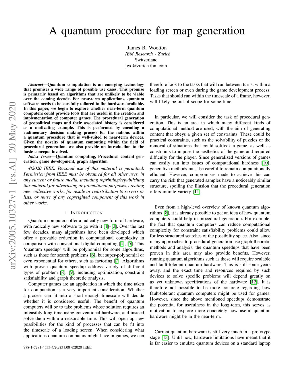Quantum computation is an emerging technology that promises a wide range of possible use cases. This promise is primarily based on algorithms that are unlikely to be viable over the coming decade. For near-term applications, quantum software needs to be carefully tailored to the hardware available. In this paper, we begin to explore whether near-term quantum computers could provide tools that are useful in the creation and implementation of computer games. The procedural generation of geopolitical maps and their associated history is considered as a motivating example. This is performed by encoding a rudimentary decision making process for the nations within a quantum procedure that is well-suited to near-term devices. Given the novelty of quantum computing within the field of procedural generation, we also provide an introduction to the basic concepts involved.