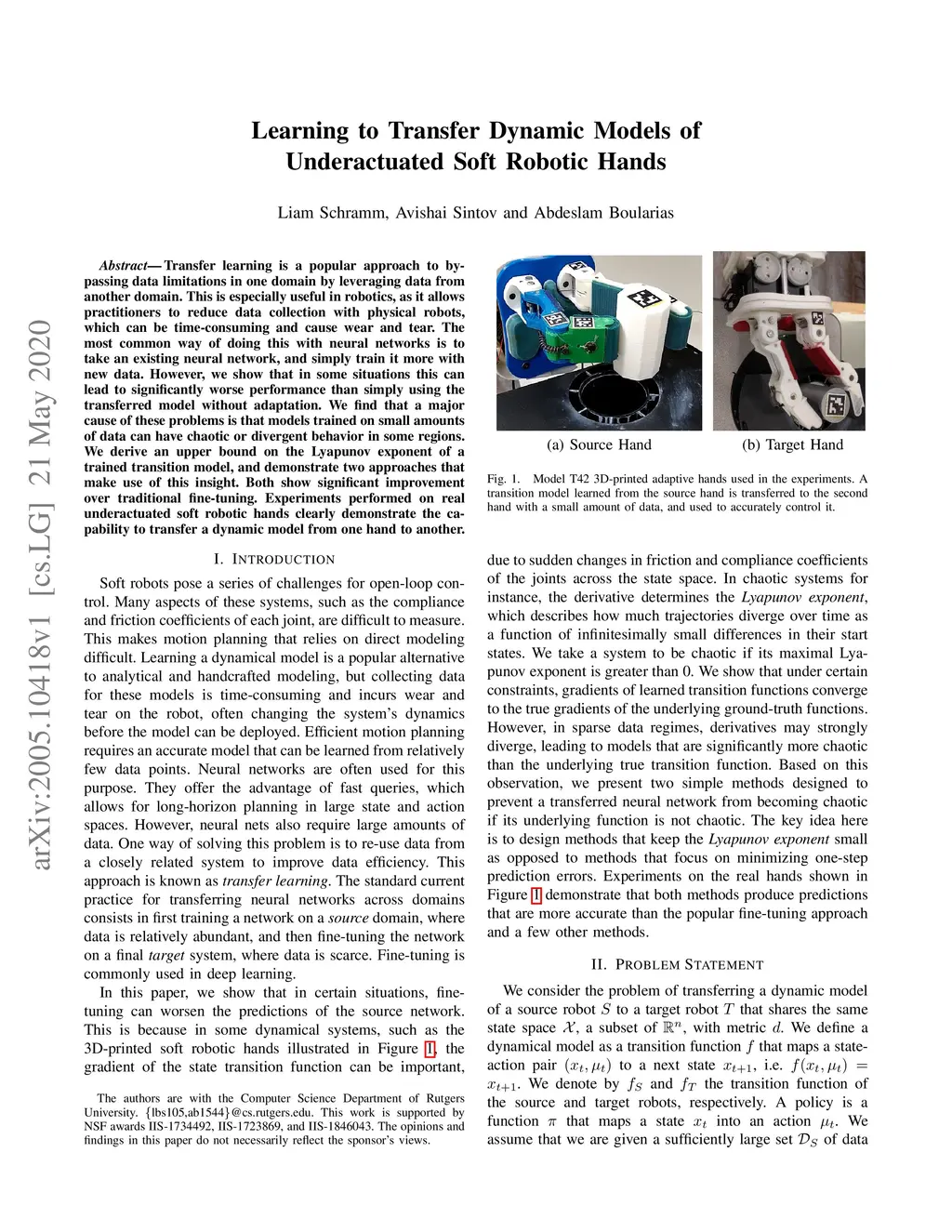 Learning to Transfer Dynamic Models of Underactuated Soft Robotic Hands