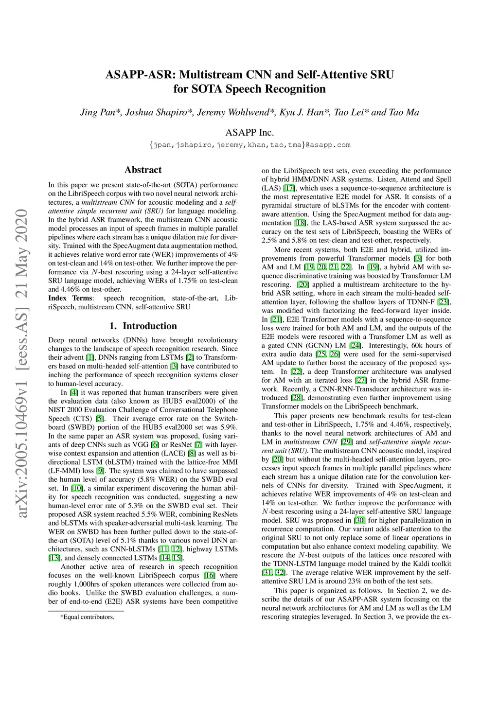 ASAPP-ASR: Multistream CNN and Self-Attentive SRU for SOTA Speech