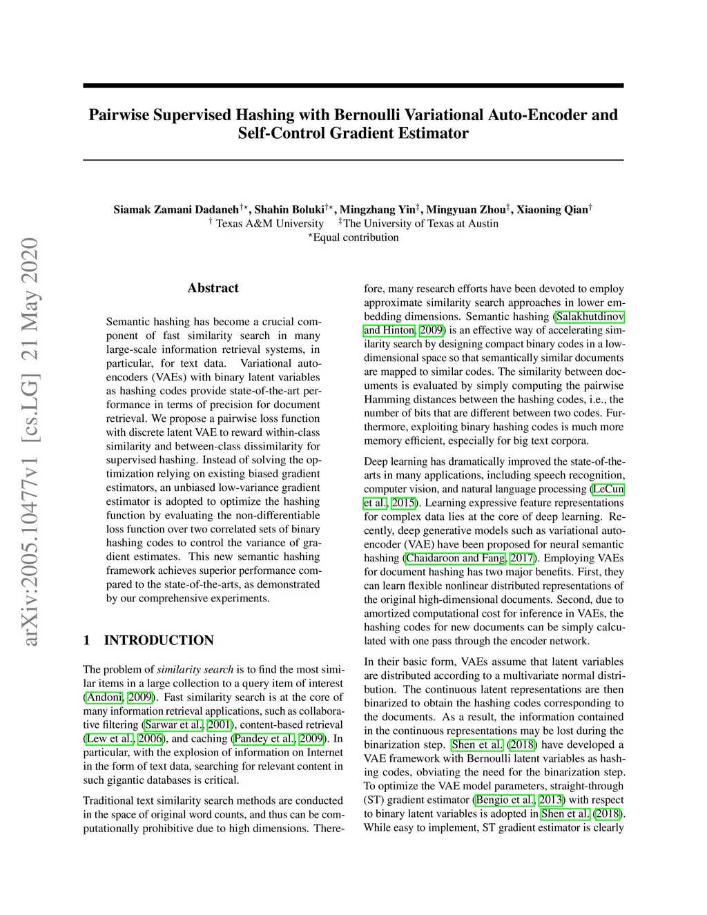 Pairwise Supervised Hashing with Bernoulli Variational Auto-Encoder and