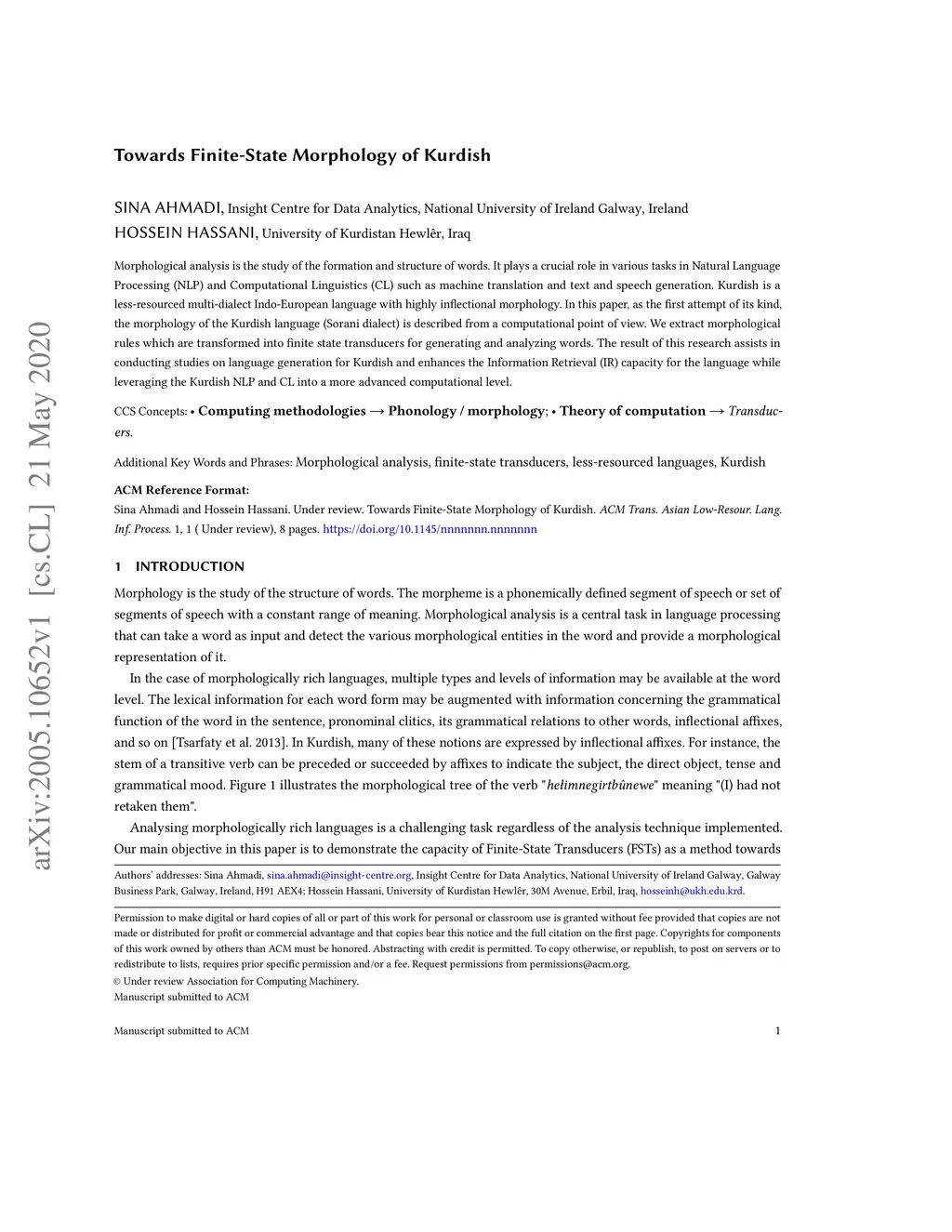 Towards Finite-State Morphology of Kurdish