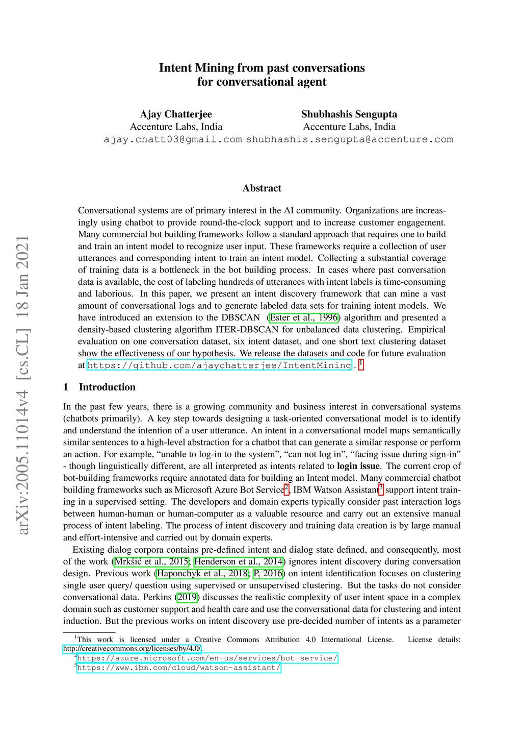 Intent Mining from past conversations for conversational agent