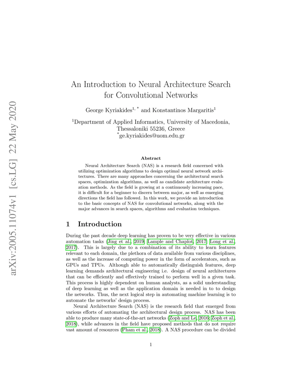 An Introduction to Neural Architecture Search for Convolutional Networks