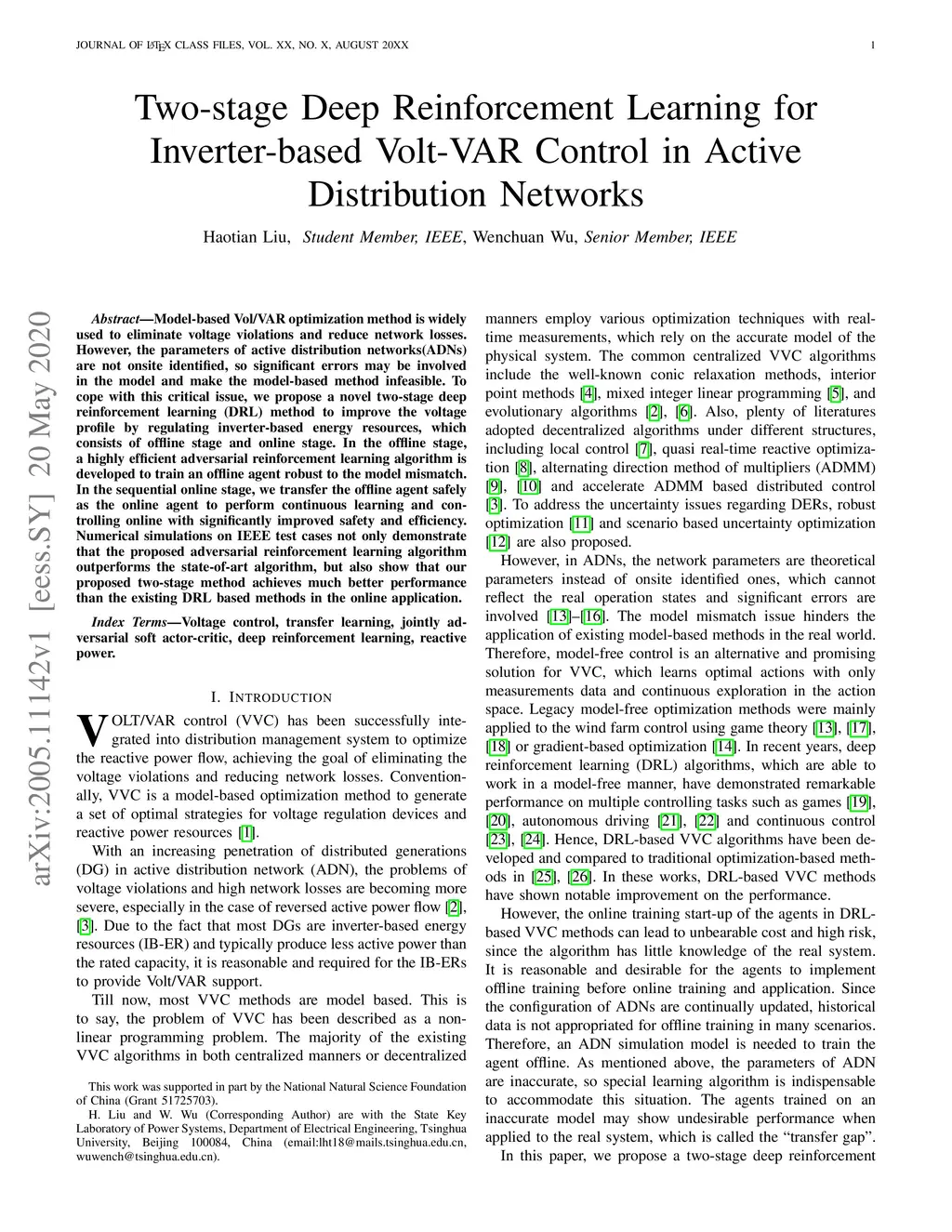 Two-stage Deep Reinforcement Learning for Inverter-based Volt-VAR