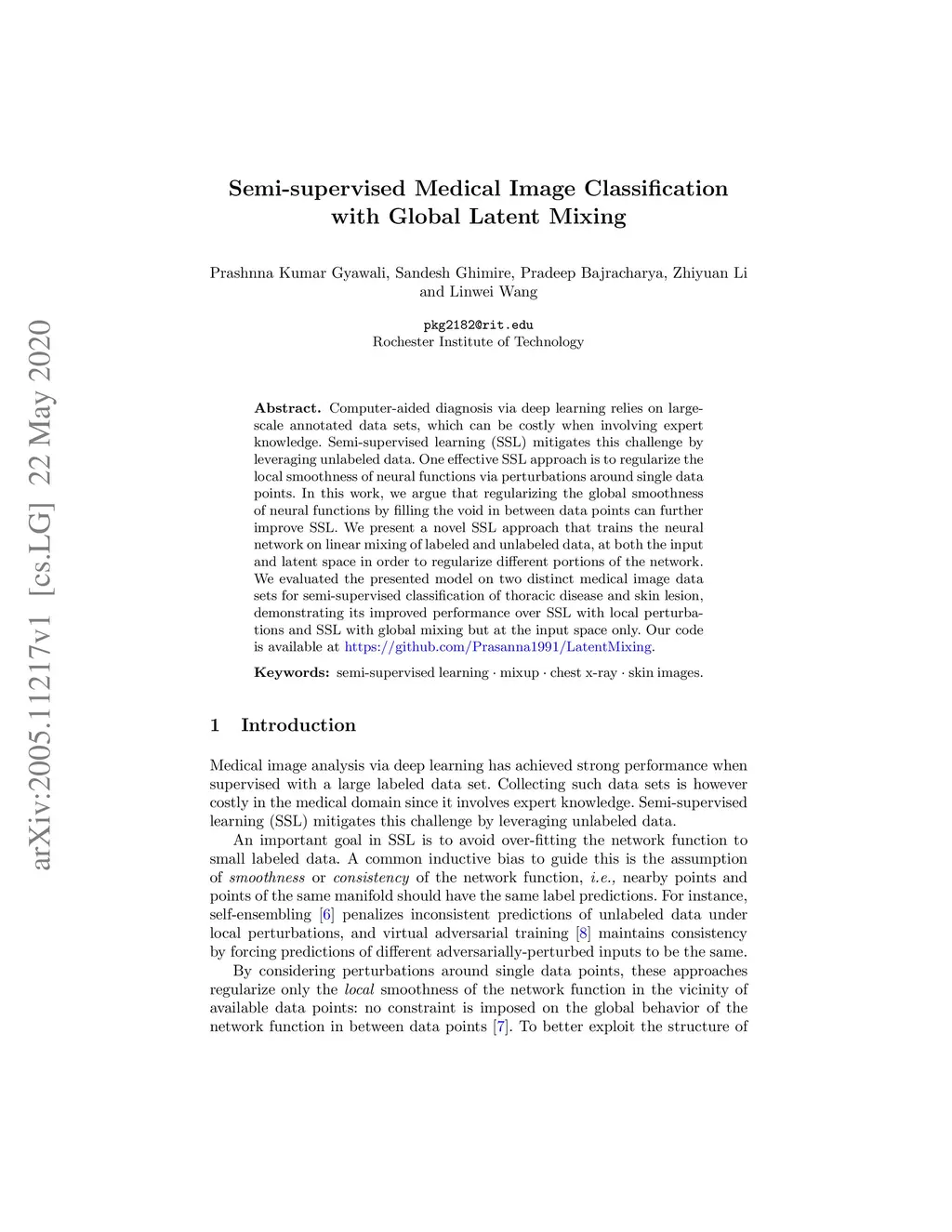 Semi-supervised Medical Image Classification with Global Latent Mixing