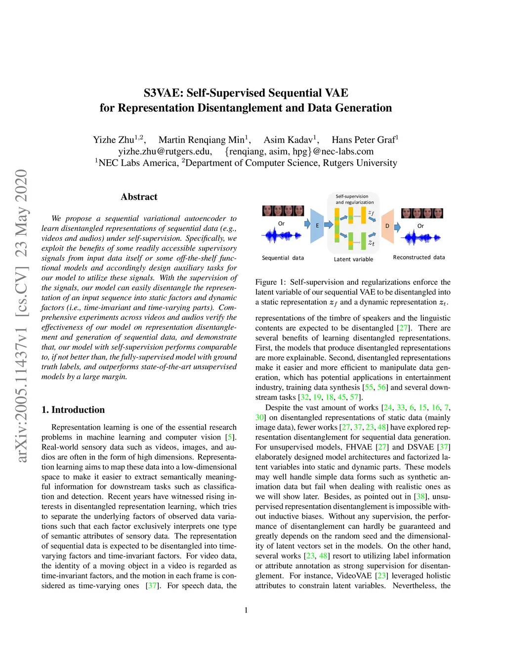 S3VAE: Self-Supervised Sequential VAE for Representation Disentanglement