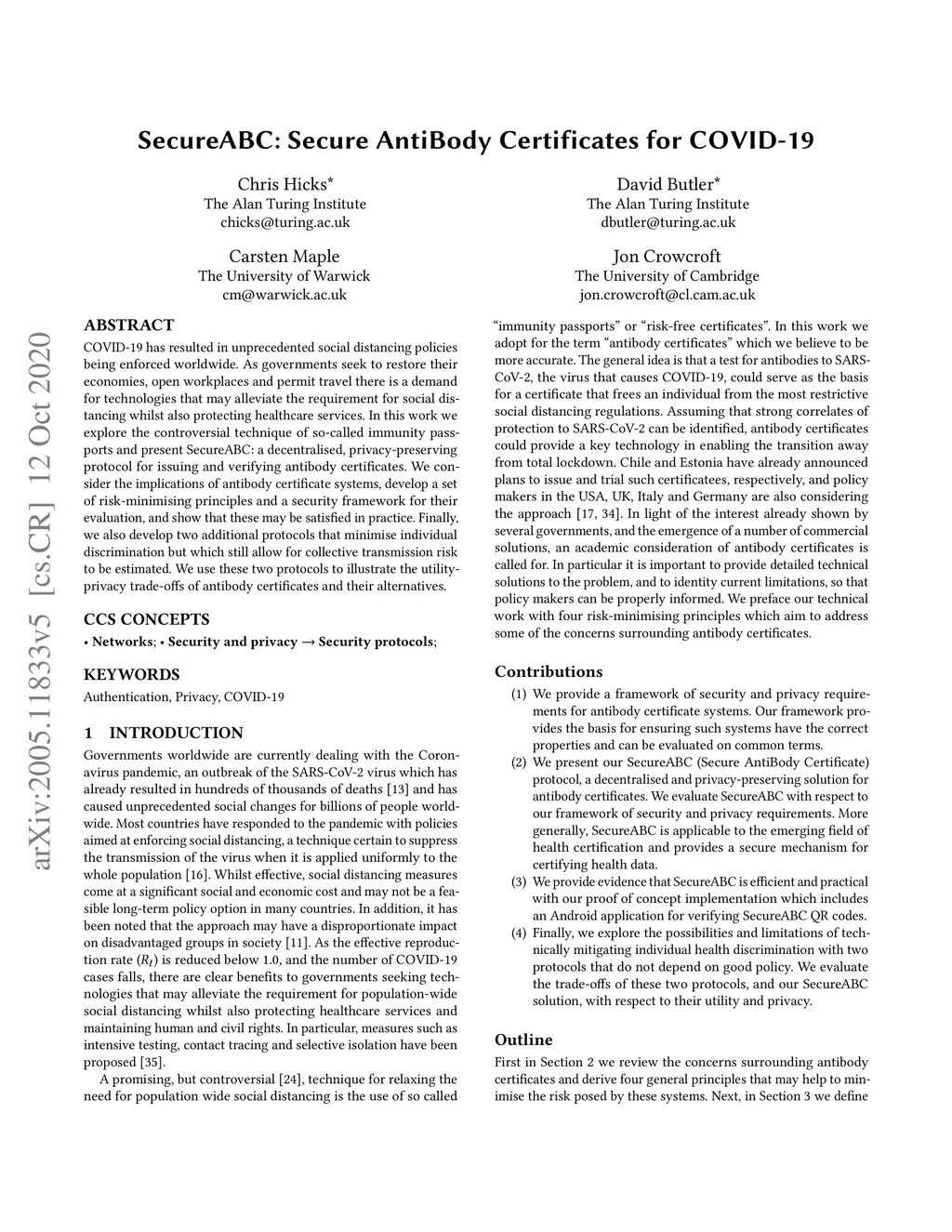 COVID-19 has resulted in unprecedented social distancing policies being enforced worldwide. As governments seek to restore their economies, open workplaces and permit travel there is a demand for technologies that may alleviate the requirement for social distancing whilst also protecting healthcare services. In this work we explore the controversial technique of so-called immunity passports and present SecureABC: a decentralised, privacy-preserving protocol for issuing and verifying antibody certificates. We consider the implications of antibody certificate systems, develop a set of risk-minimising principles and a security framework for their evaluation, and show that these may be satisfied in practice. Finally, we also develop two additional protocols that minimise individual discrimination but which still allow for collective transmission risk to be estimated. We use these two protocols to illustrate the utility-privacy trade-offs of antibody certificates and their alternatives.