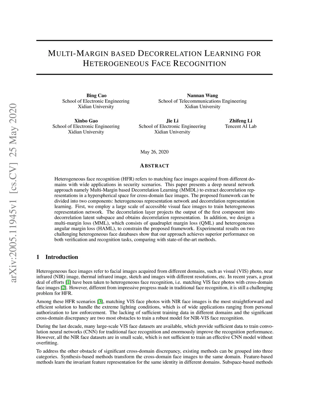 Multi-Margin based Decorrelation Learning for Heterogeneous Face