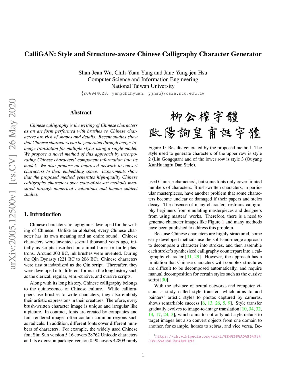 CalliGAN: Style and Structure-aware Chinese Calligraphy Character