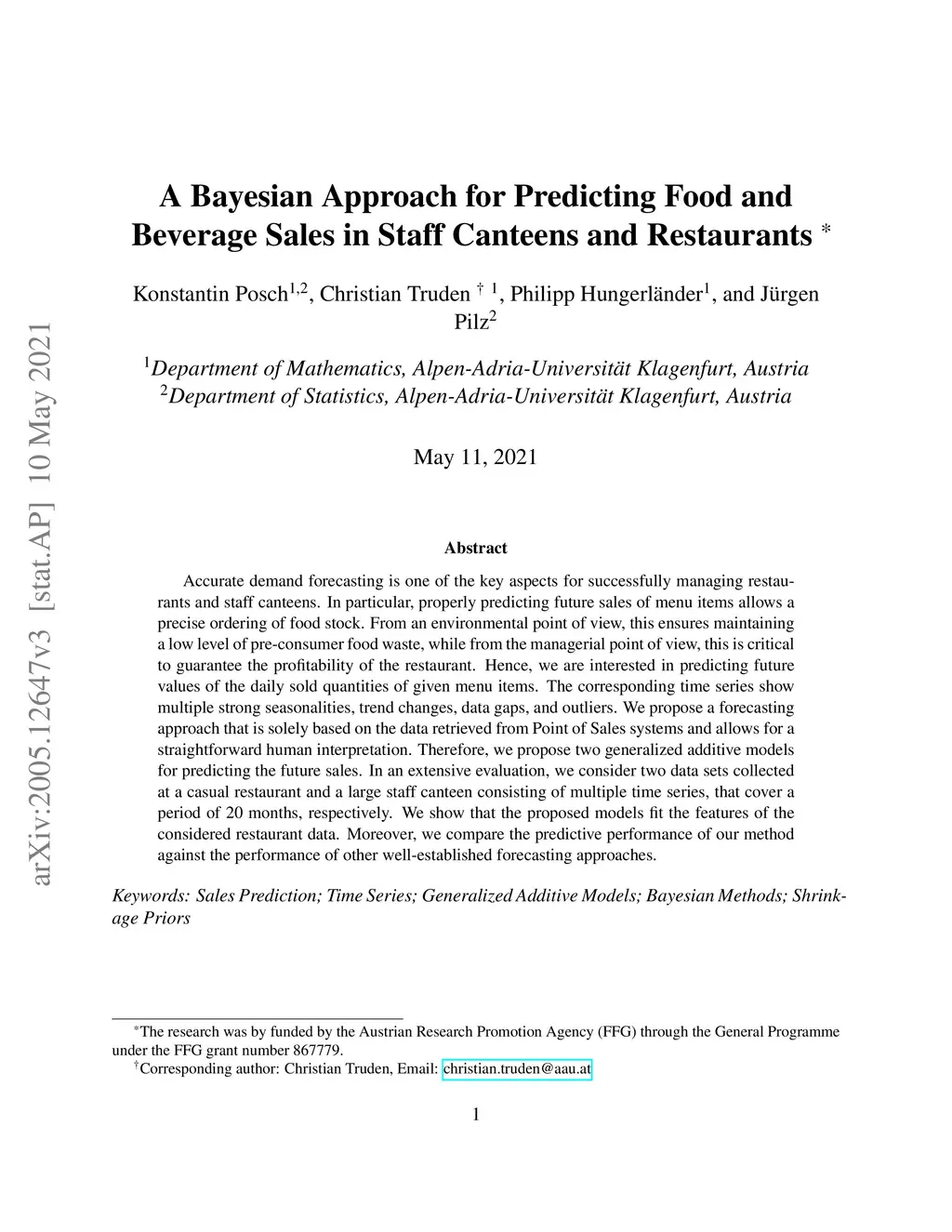 A Bayesian Approach for Predicting Food and Beverage Sales in Staff